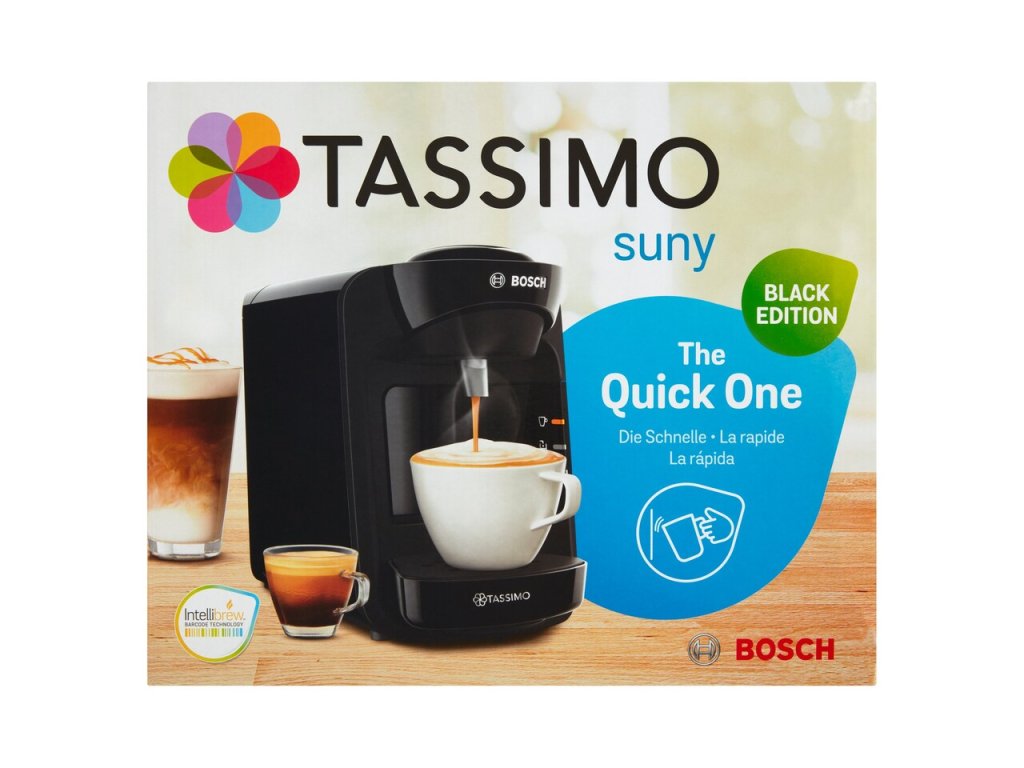 Naprava Bosch Tassimo Suny vam omogoča, da svojo prvo skodelico pripravite skoraj v trenutku, zahvaljujoč pretočnemu grelcu . Po pripravi preklopi v stanje pripravljenosti in vam pomaga varčevati z elektriko. LED indikatorji obveščajo o stanju naprave . Na kakovost vaših pijač ne bo vplival vodni kamen, ki ga naprava samodejno očisti in odstrani vodni kamen s storitvijo T Disc.