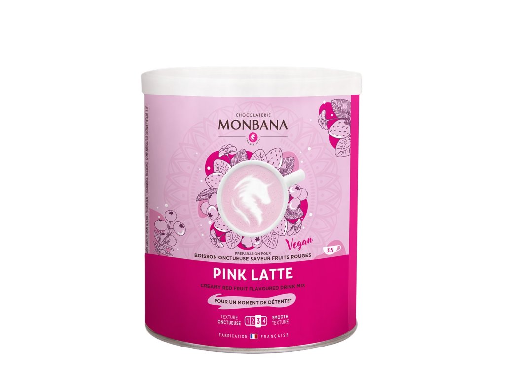 Privoščite si barvit in pomirjujoč oddih z Monbana® Pink Latte, instant mlečnim napitkom z nežnim okusom rdečega sadja. Njegov naravno roza odtenek in kremasta konsistenca sta prav tako privlačna za oko kot za brbončice.