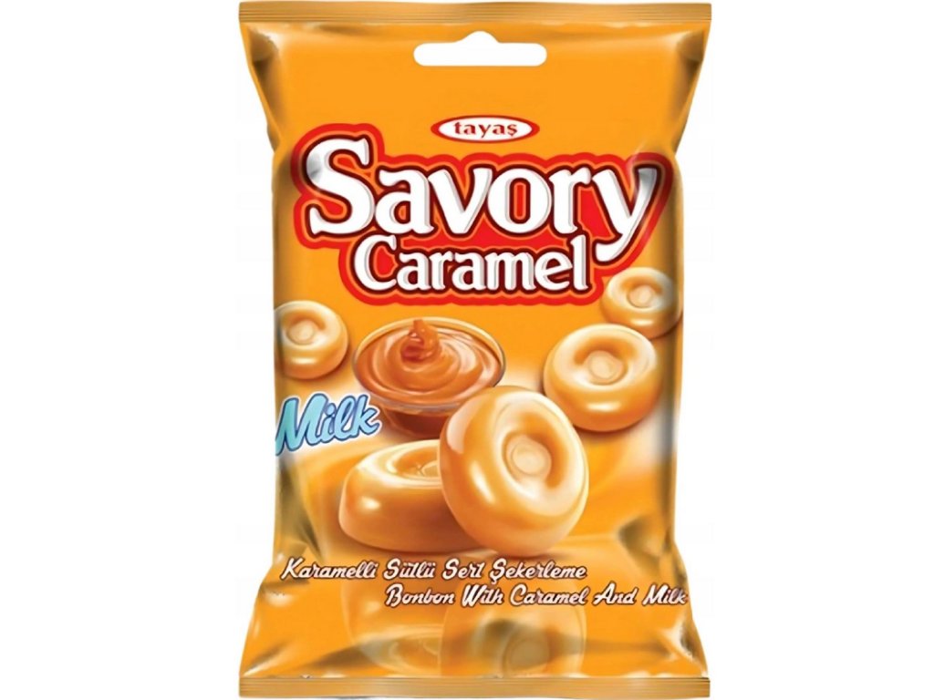 Trdi bonboni z okusom karamele in mleka, posamično pakirani.
